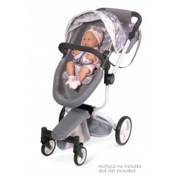 Le kit est composé de: Poussette pour Poupées 3x1 de la ligne Sky avec un petit sac assorti, des roues avant pivotantes, une ceinture de sécurité, un panier avec filet de rangement avec une couvercle et des roues silencieuses.