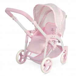 + Le pack comprend : un landau pour poupées en blanc et rose avec structure pliante, des tendeurs de bonnet, un matelas, un coussin, un plateau en tissu, un parasol et un sac pour enfants avec un intérieur en tissu assorti au landau.