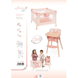 Obtenez ce deux en un très spécial pour le jeu d’imitation, ce kit comprend une précieuse chaise haute et un parc de jeux, avec design spécial...