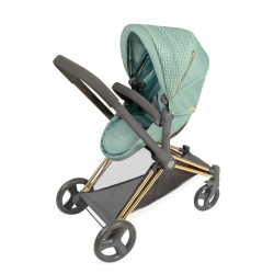 Comprend : 1 poussette de poupées Capriccio de couleur verte et noire avec design 3 en 1 convertible en chaise et nacelle, structure pliable, roues avant giratoires, ceinture de sécurité de style harnais, plateau inférieur porte-objets, toile renforcée et lisse combinée, partie de la structure chromée, sac assorti et plus de détails de luxe.